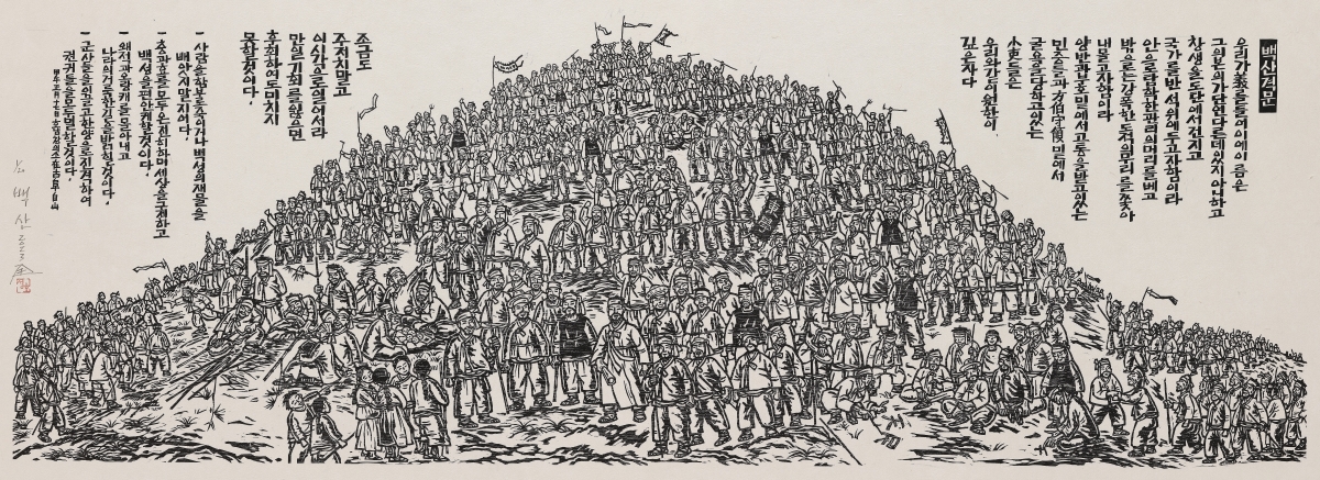 2023년 하반기 참여작가를 확정하여 12월에 정읍-해남-장흥 답사를 거쳐 부산민주항쟁기념사업회 소장작품 3점(김준권, 신학철, 이철수), 참여작가 14명(김경화, 김미련&싱어게인언니야!, 김우성, 김화순, 박경열, 박성우, 박재열, 서지연, 윤은숙, 전상보, 전정호, 정지영, 홍성담, 홍성민) 작품 15점으로 구성하였다. 동학농민혁명 130주년 기념전시 가운데 가장 먼저 시작하고 가장 길게 이어진 전시였다. 규모는 크지 않았지만 올해 동학 주제 전시의 전범이 되었다. 참여작품 가운데 김화순, 박경열, 서지연, 홍성담의 작품은 9월 광주시립미술관 특별전에 초대되었다.