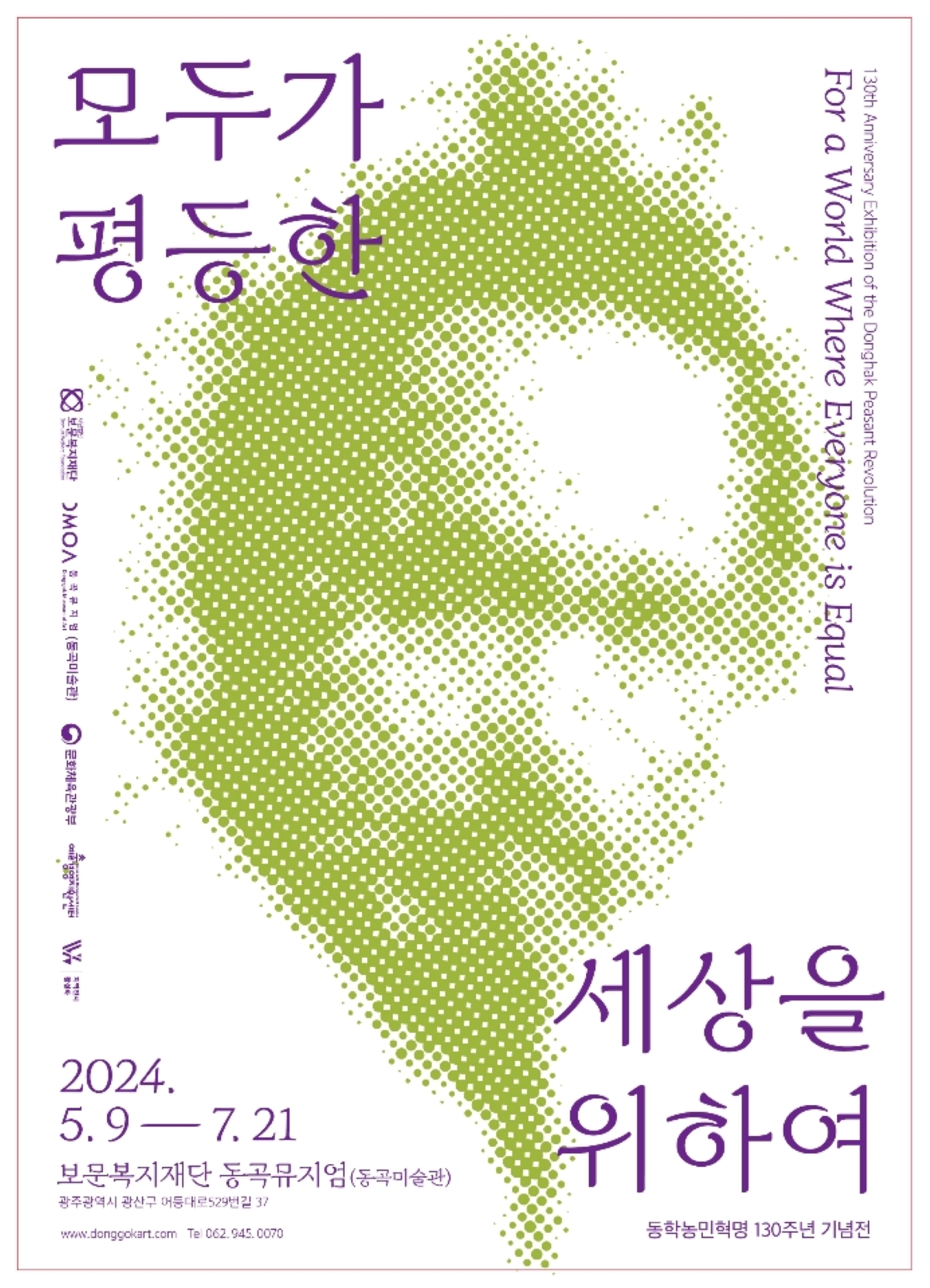 광주비엔날레 기간에 열리는 광주시립미술관 특별전 ‘시천여민-동학에서 오월로’는 올해 동학 주제 전시를 결산하는 전시가 될 것이다. 광주시립미술관 김준기 관장은 작년부터 전국의 큐레이터, 작가들과 동학 주제 답사를 다니며 올해의 주제 전시를 예감하였다. 3월부터 이어진 순회전시를 관장과 담당 큐레이터가 충실히 관찰하였다. 40여명의 작가가 참여하는 전시는 올해 열리는 주제 전시 가운데 가장 큰 규모를 가졌다. 일본 민중미술의 대표작가 도미야마 다에코를 비롯한 국외작가의 작품도 참여한다. 작가 홍성담은 앞선 순회전시에 걸린 9미터 세로 걸개그림 ‘시천주조화정(2002)’과 함께 오월의 정신을 구현한 2024년 신작을 함께 건다. 2폭의 세로 걸개그림이 동학에서 오월로 이어지는 이야기를 어떻게 들려줄지 몹시 설렌다. 우리 모두 그림틀을 타고 동학농민혁명의 언덕, 골짜기, 틈을 타고 노니세. 동학농민혁명의 들판과 우리 광장은 이어져 있다.