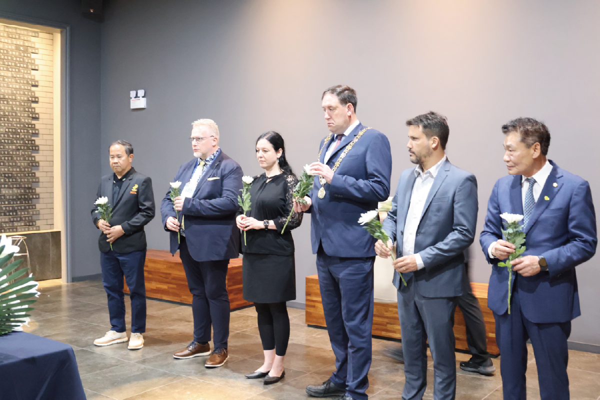 ▣헌화│세계혁명도시 국외 내빈 ▣식전 공연│ <무장포고문> 낭독 퍼포먼스