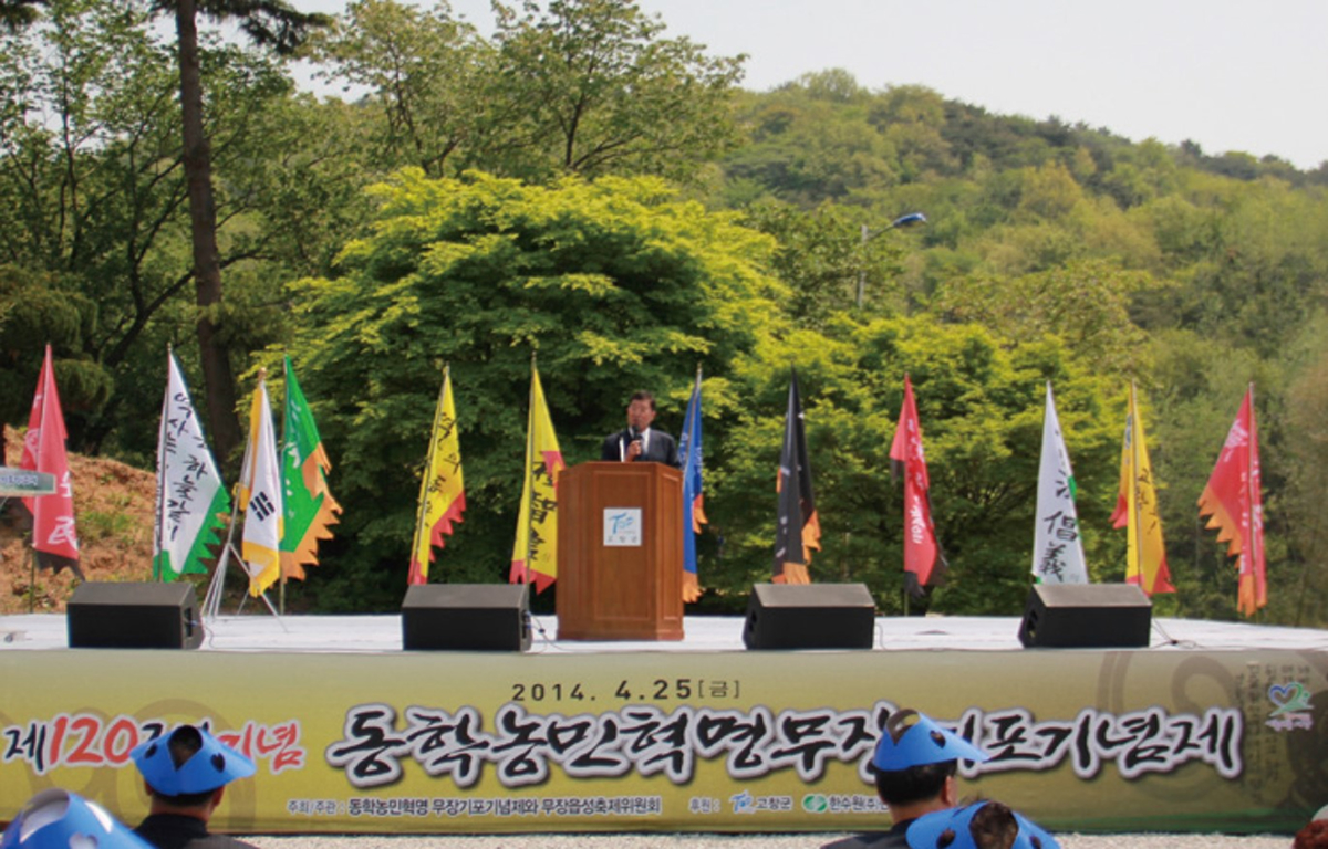 (사)고창동학농민혁명기념사업회(이사장 이강수)에서는 지난 4월 25일(금) 무장읍성에서 무장기포기념식을 개최하였다. 올해 무장기포기념제는 동학농민혁명 120주년을 맞이하여 무장읍성 축제로 성대하게 계획되었으나, 세월호 침몰사고를 애도하는 의미에서 공연 등 일부계획을 생략하여 축소 진행되었다. 이날 행사에는 박남수 천도교 교령, 김대곤 동학농민혁명기념재단 이사장, 사회기관단체장, 고창군민 등 200여명이 참석하여 성황을 이루었다.